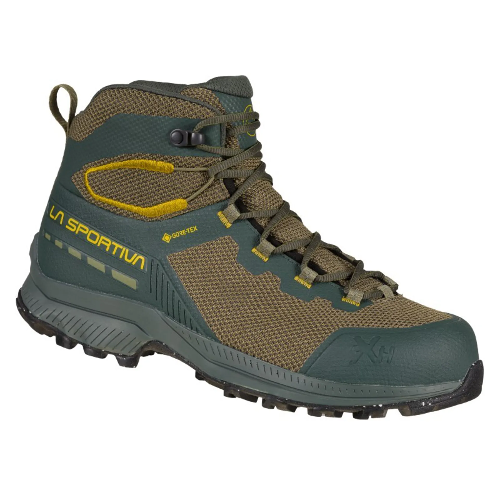 Fast hiking boot made with eco-compatible components such as laces and straps in 100% recycled material, Ortholite® Hybrid insole, Vibram® Eco Step tread with components deriving from the processing cycle, upper in recycled fabric. It combines solutions of the La Sportiva Mountain DNA with technologies derived from Mountain Running® for a polyvalent and sustainable product. The very large volumes allow a very high wearing comfort. The new Gore-Tex® Extended Comfort membrane is also made with end-of-life plastic materials and is Bluesign® certified. The compression midsole in partially recycled EVA adds stability and cushioning for a reliable and comfortable product to wear even for multi-day hiking. TX Hike: we think, you hike.