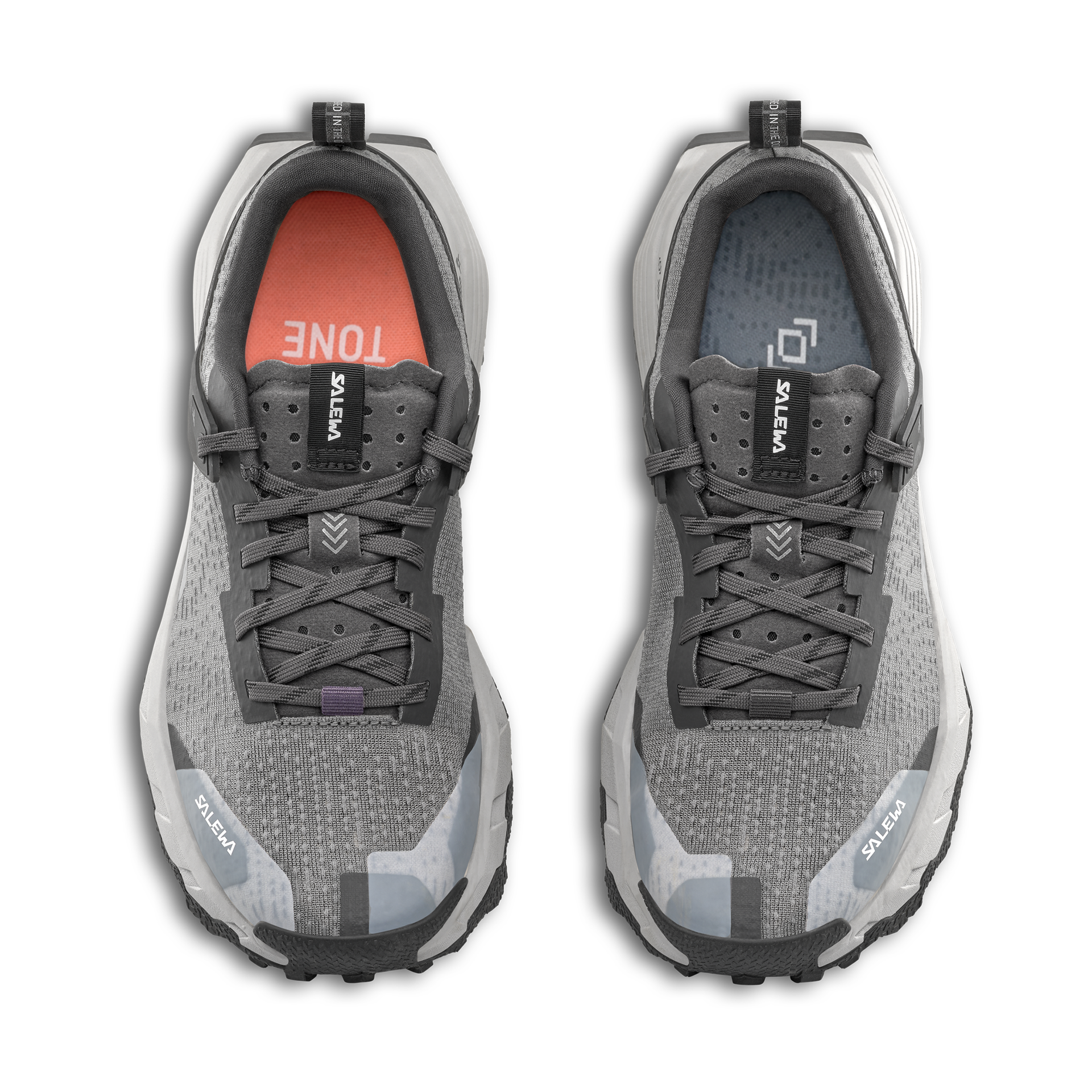 A Salewa dual-density recycled footbed provides underfoot cushioning and support. The dual-density construction helps absorb impact while maintaining a responsive feel, supporting comfort over longer distances without sacrificing ground feedback.