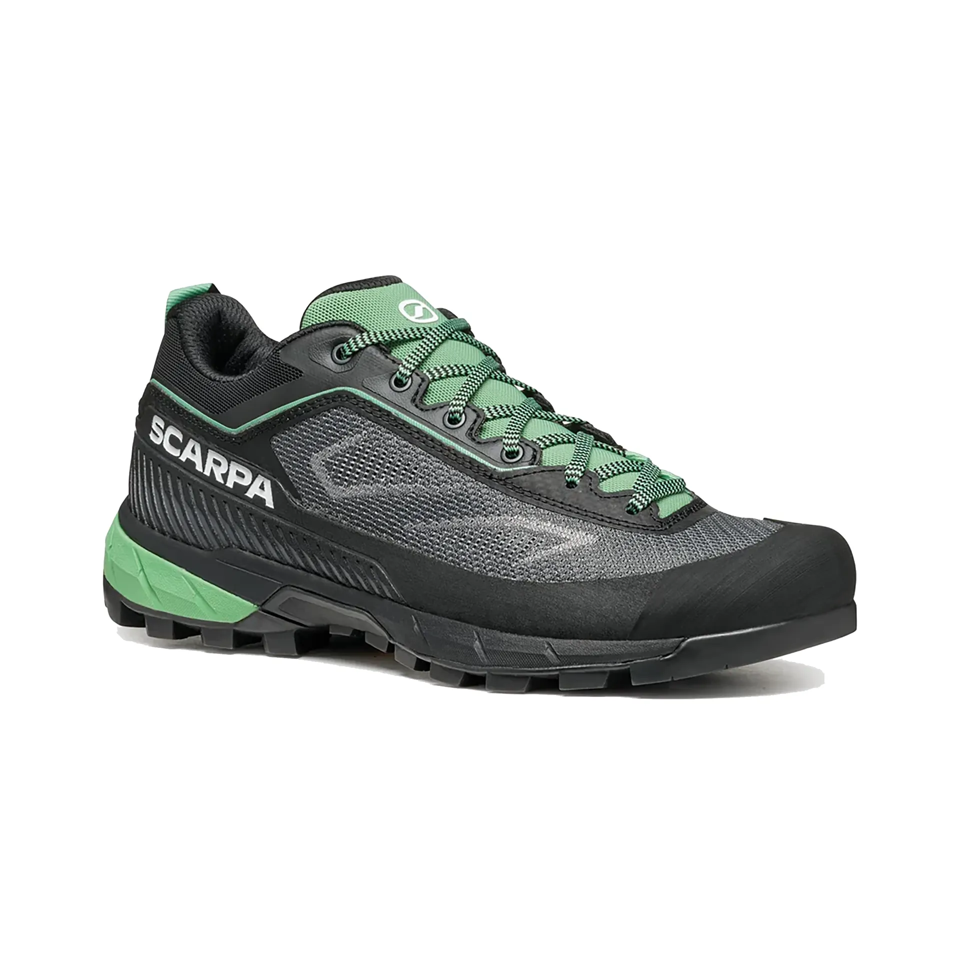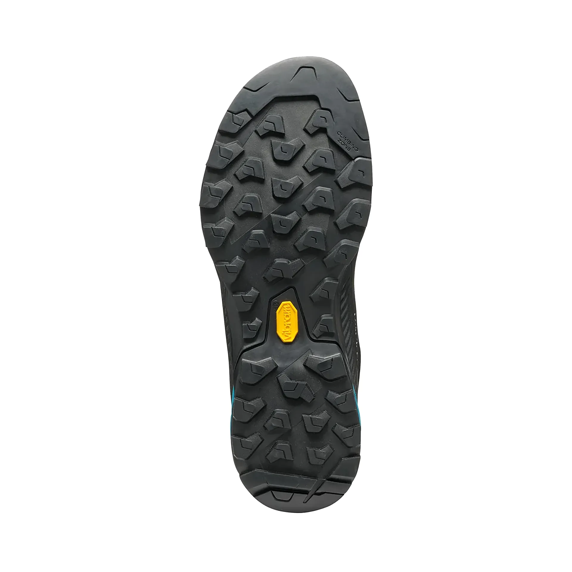 The Vibram MegaGrip outsole, designed exclusively for Scarpa, features distinct zones for propulsion, braking, and stability. Its climbing zone at the toe offers excellent edging precision, while the brake system at the heel enhances control on descents.