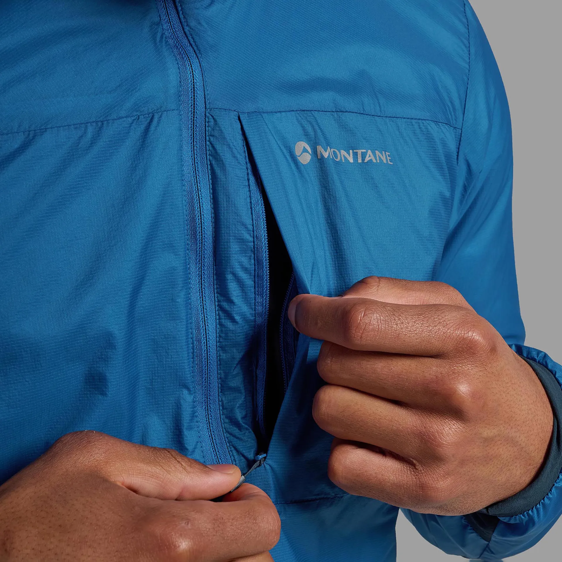 Fabrics: Montane has used lightweight 12-denier Barrier Tough fabric for the outer fabric. This densely woven mini-ripstop material is made from recycled nylon yarns and is exceptionally abrasion-resistant for its weight, allowing it to withstand the rigours of mountain adventures whilst keeping the jacket's overall bulk to a minimum. This face fabric is finished with a PFC/PFAS FREE DWR (durable water repellent) coating to allow it to shed light rain and snow without the use of harmful forever chemicals. However, please note, this does not make the jacket waterproof.