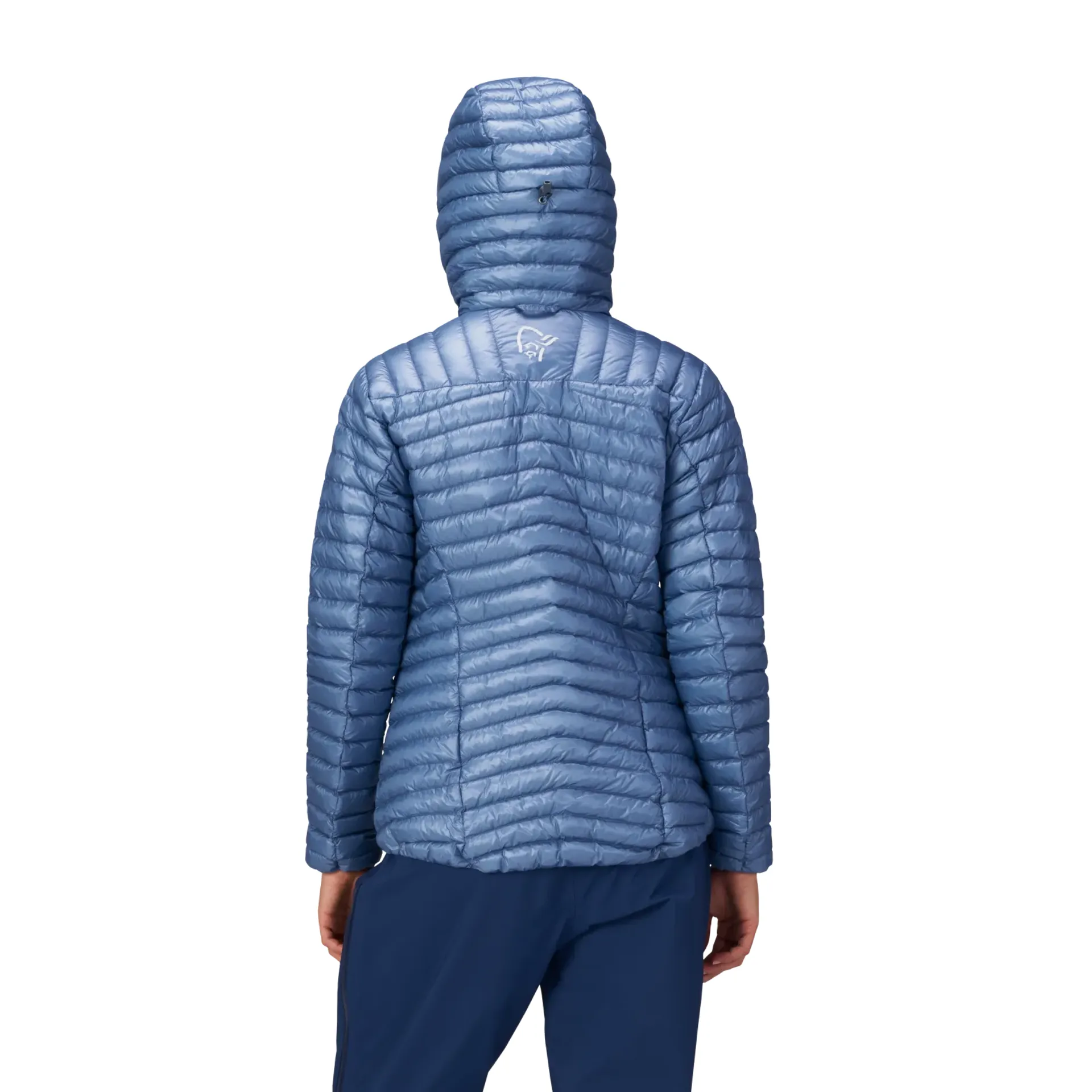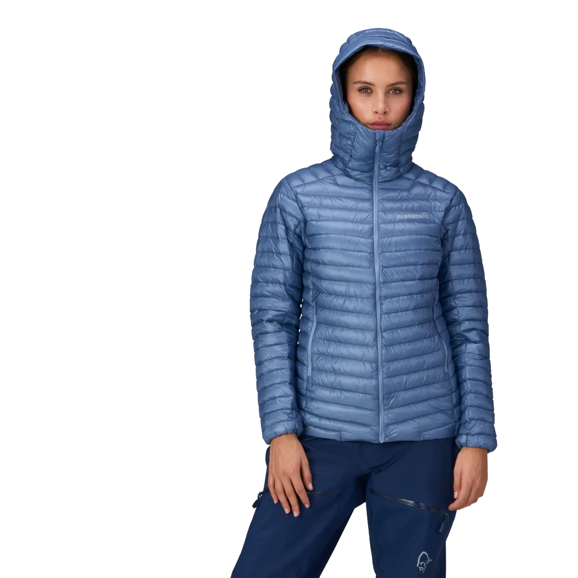 Norrona uses a lightweight aeroDownproof face fabric made from 100% recycled 10D nylon, weighing 28g/m². This fabric offers excellent weather protection, combining lightweight durability with a soft touch.