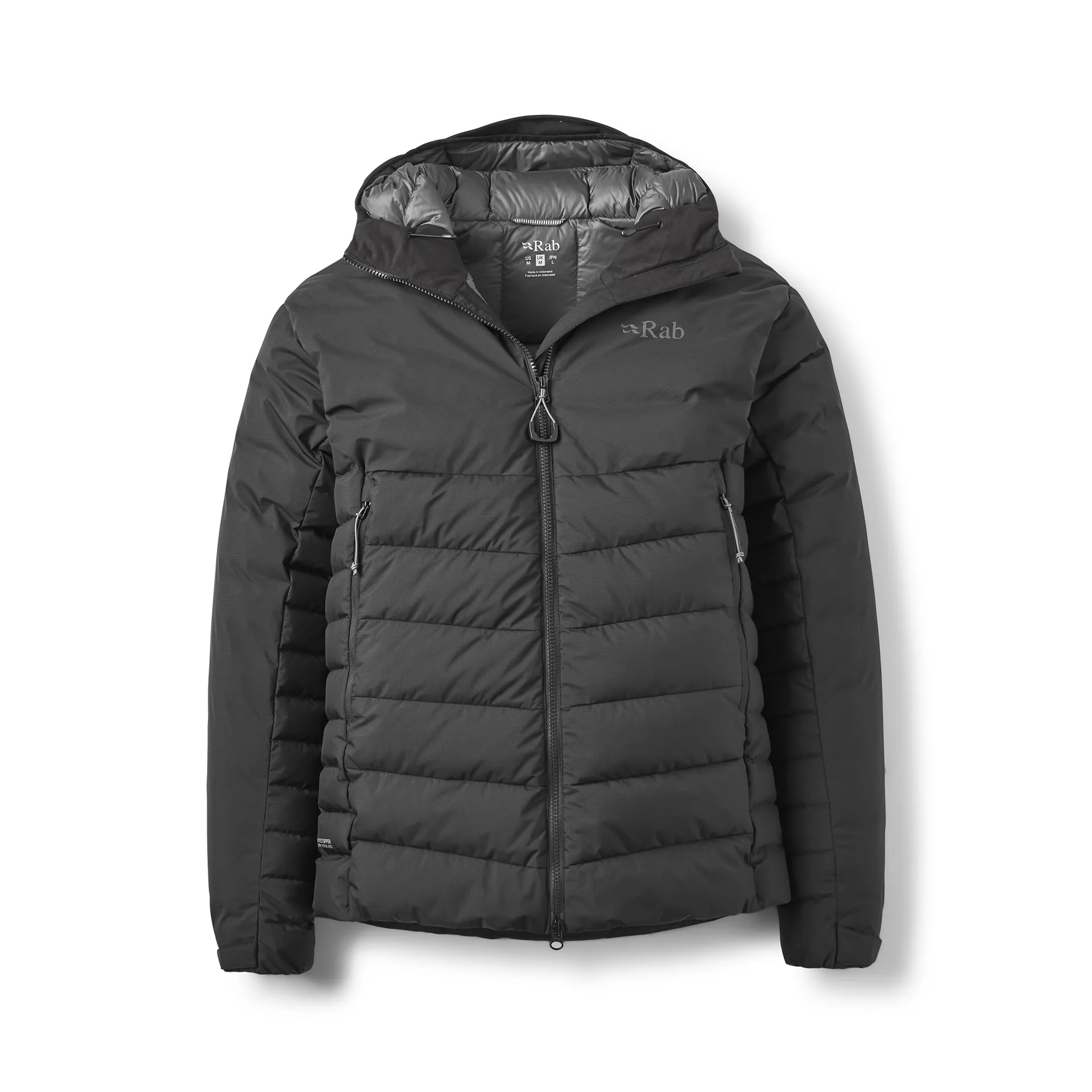 The down is treated with a Grangers fluorocarbon-free hydrophobic finish, which adds light water resistance to the down itself. This helps the down maintain its thermal performance in damp environments, as it's no secret down and moisture don't like each other! Grangers Down Defend® is a hydrophobic down treatment that is bluesign® approved and helps keep down lofted in damp conditions. It gives the down over 375x more durability than untreated down, extending the lifespan of your jacket. In Rab's testing (shake test), this virgin down can resist moisture for at least 15000 minutes and also improves the down's fill power by up to 5%. Allowing the jacket to keep you warmer for longer. Neat right?