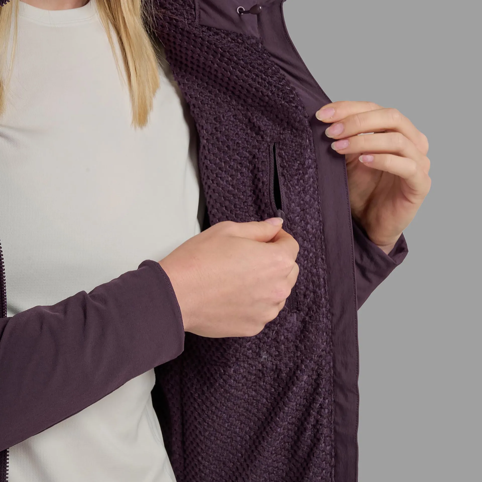 For highly breathable and efficient warmth, the Khamsin Hoodie uses an Octa fleece dropped lining to keep you warm yet comfortable all day, even during high-output activities. The Octa fleece is comprised of 100% recycled polyester, making it a more environmentally responsible choice than virgin polyester. Its innovative fibre structure makes it highly thermally efficient while boasting excellent moisture management, allowing you to tackle tough trails and tricky ascents without overheating. This fleece lining is cleverly constructed and mapped throughout the jacket to maximise performance whilst keeping bulk to a minimum for comfort and easy layering.