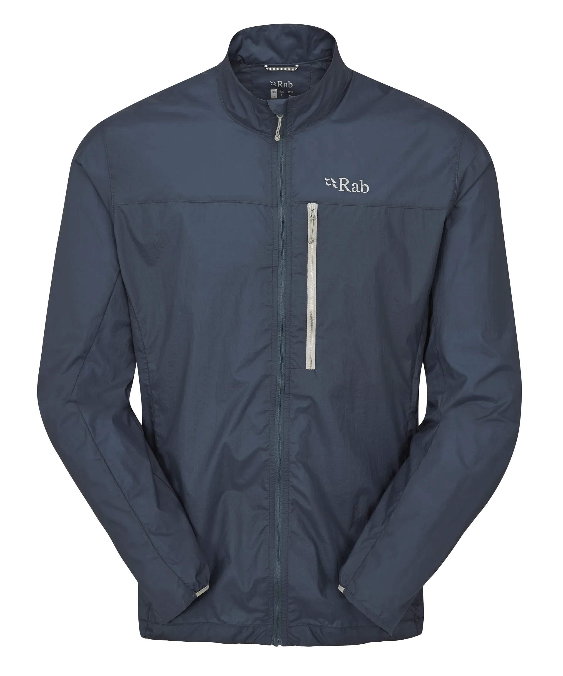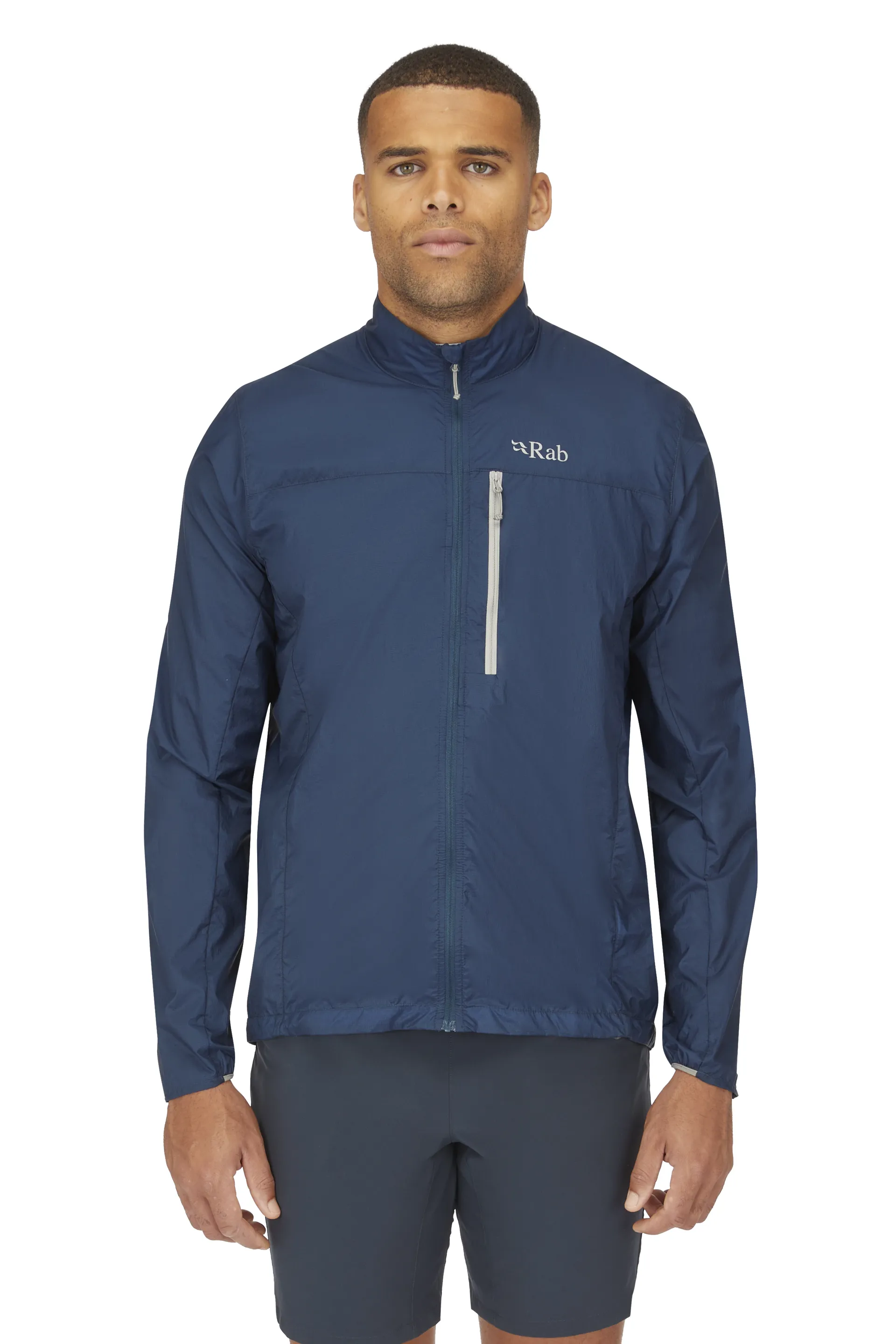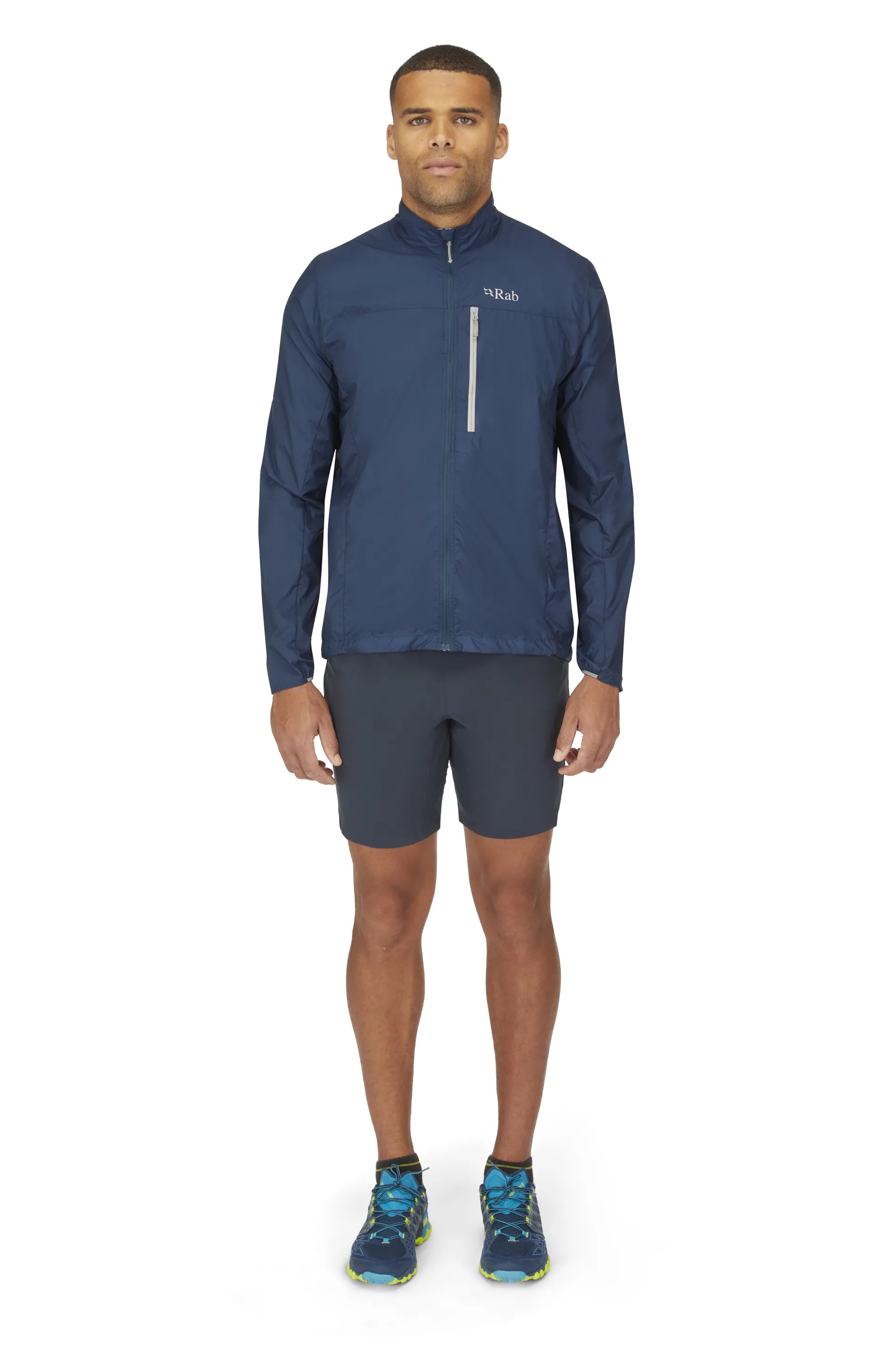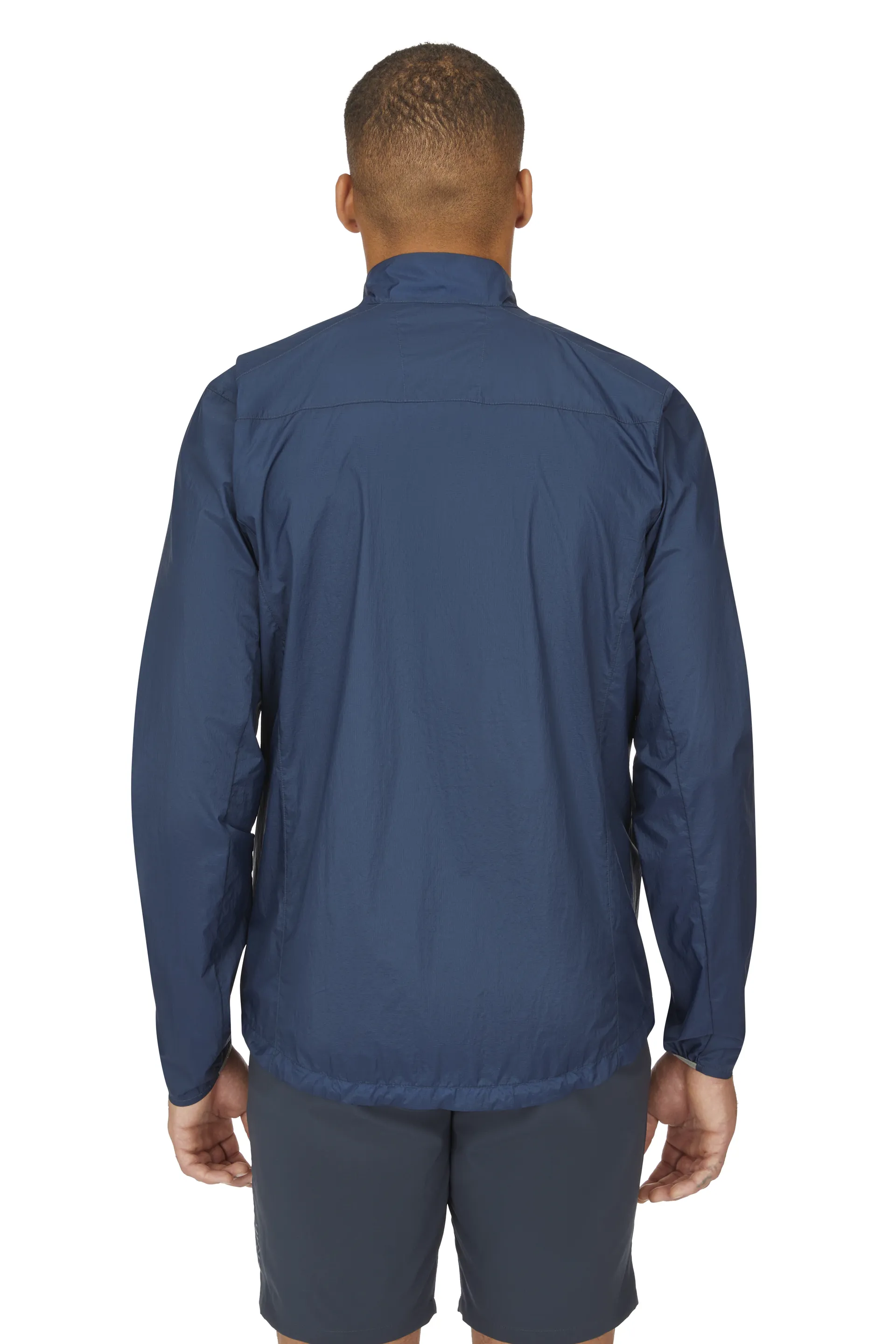 A full-length zip down the centre front makes for quick and easy access in and out of the jacket, whilst the internal stormflap with a rollover chin guard enhances protection from harsher weather. A close-fitting collar helps prevent too much movement from excess fabric blowing in the wind, ideal when you're exposed on a mountain summit or are simply walking to work on a blustery day. There is also a snap closure detail on the chest for extra ventilation, great for added breathability during intense activities like running or tackling steep inclines.