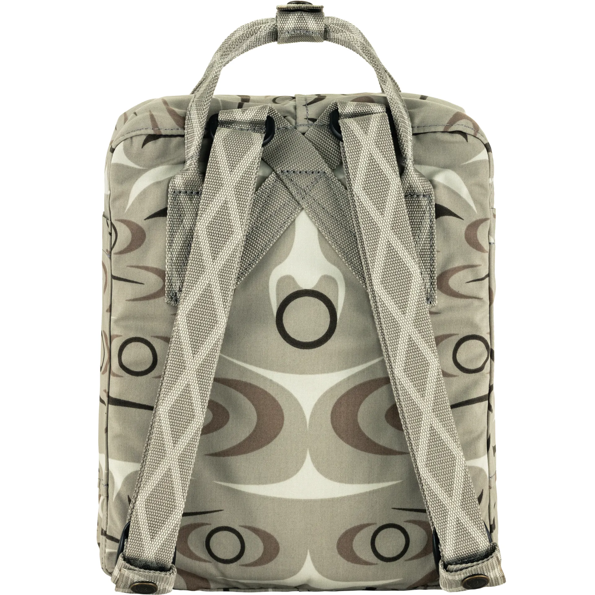 The Kanken Art Mini proudly boasts the ancestral artwork of Charlene Johnny, a Coast Salish artist from the Quw'utsun tribes of Duncan, BC. Due to the patterned nature of the fabric, each backpack will slightly vary in appearance, adding to the already special and unique design of the bag.
