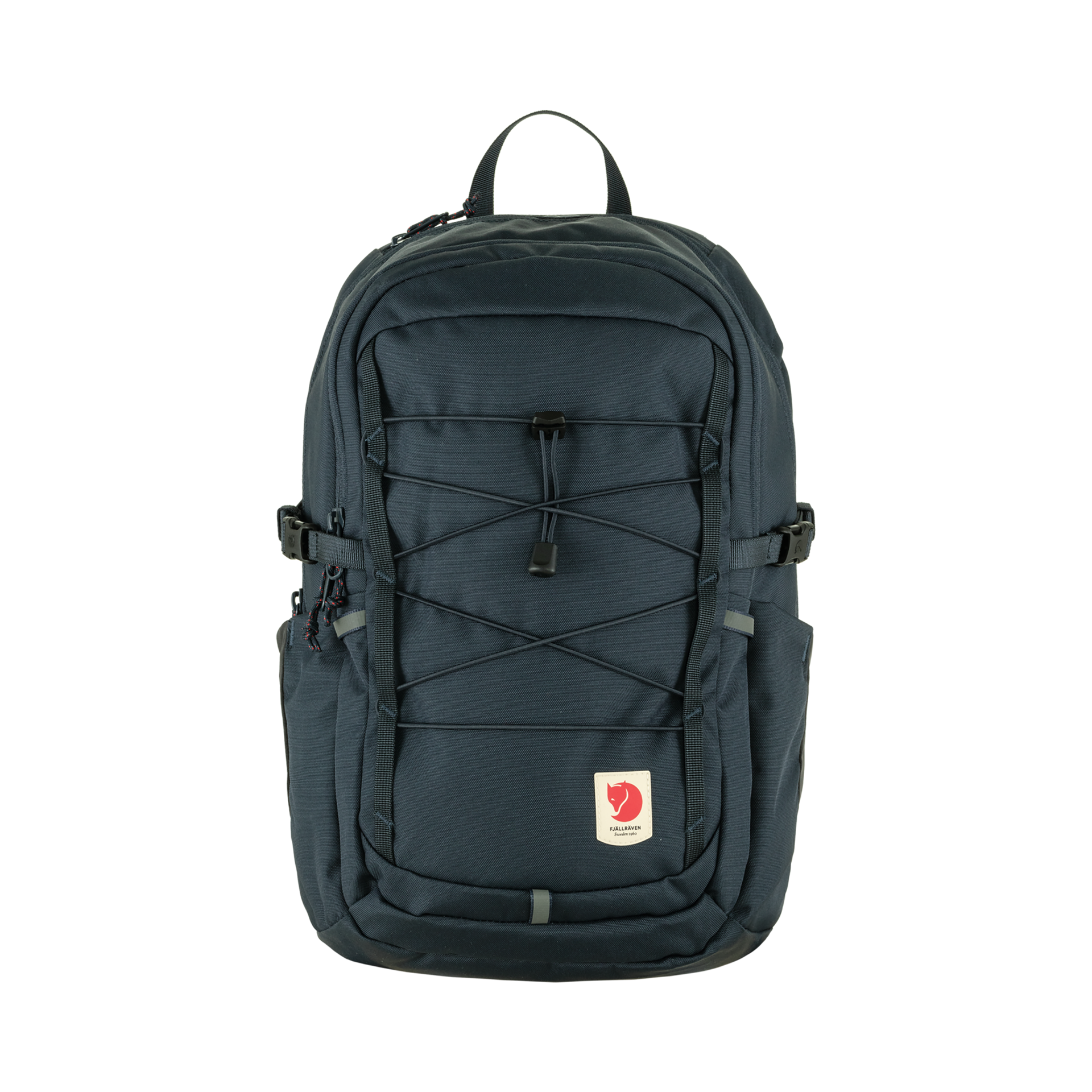 - Webbing loops and adjustable elastic cord for attaching extra gear onto the front
