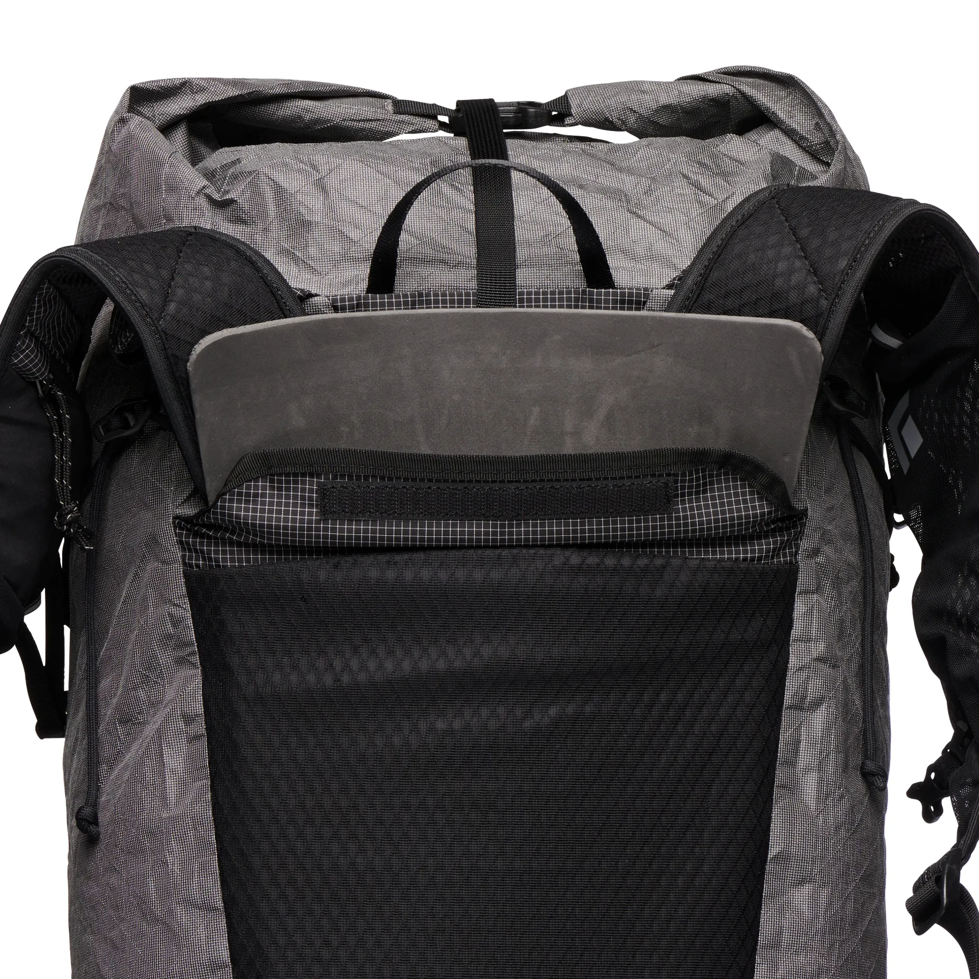 - Roll-top closure, taped seams and waterproof fabric create weatherproof pack body