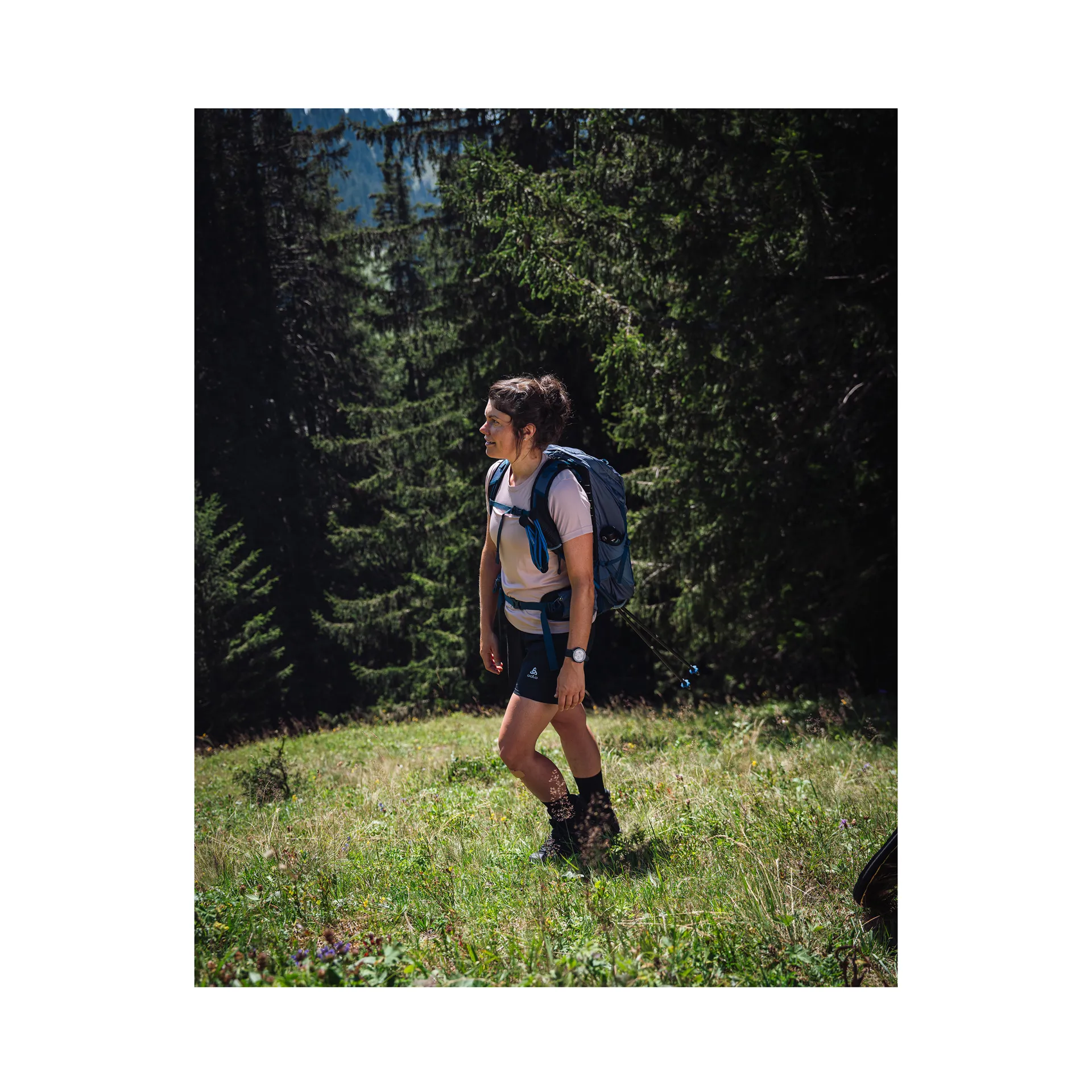A seamless lumbar-to-hip-belt body wrap and additional BioStretch seams provide further flexibility.