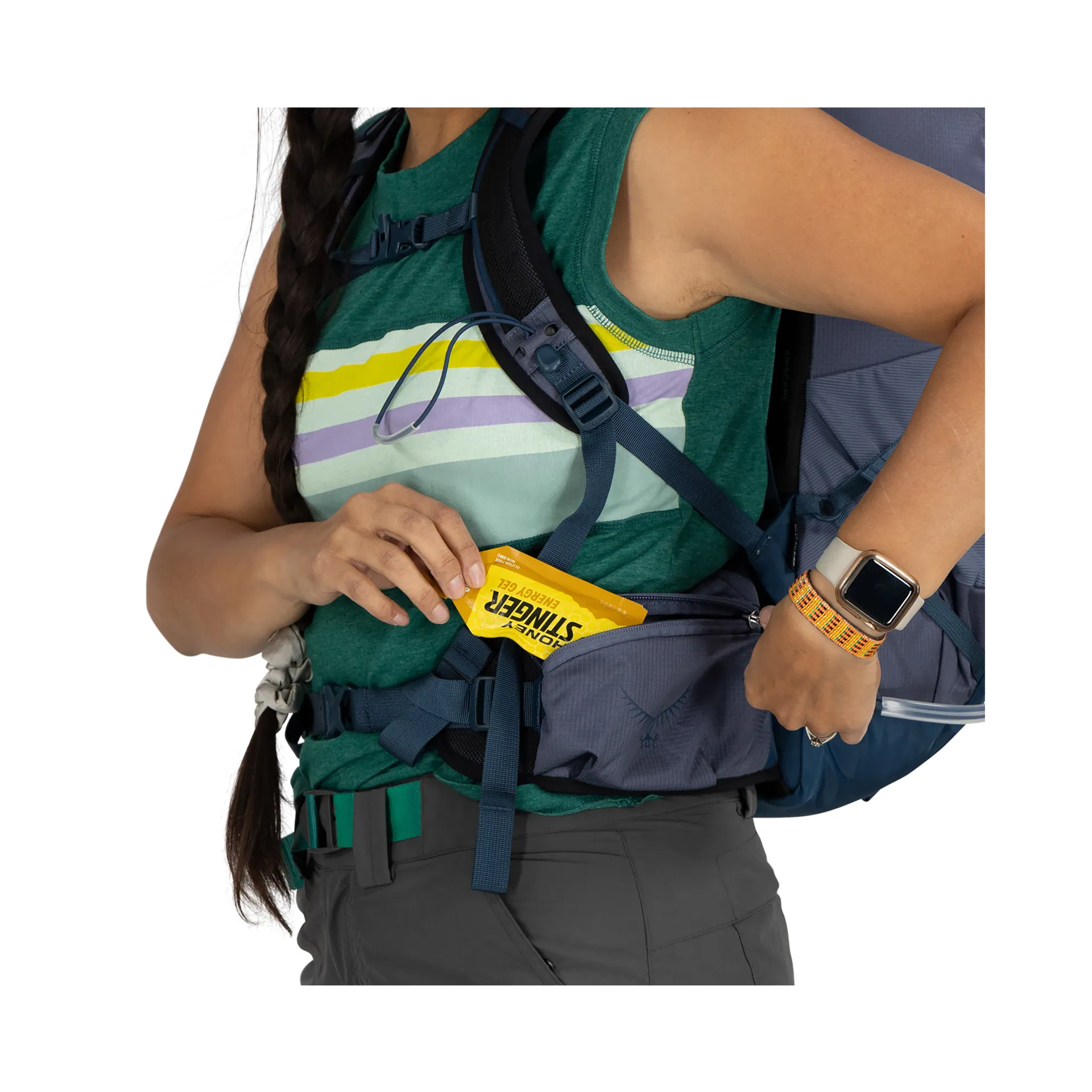 You can easily adjust the harness to fit your torso length, plus the sternum strap to help keep the pack stable.