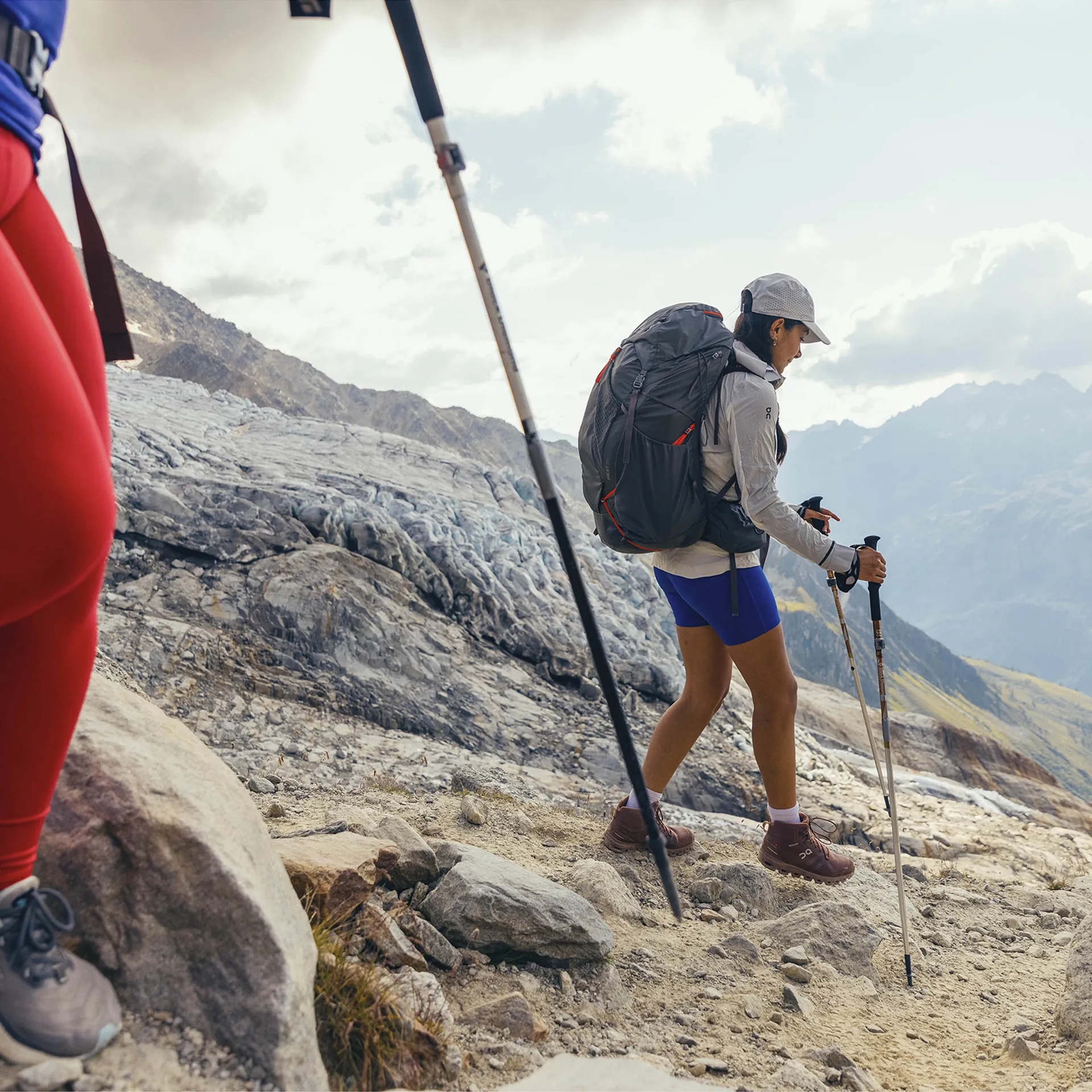 The addition of reflective lower loops and upper shock locks prioritises safety, ensuring you stay visible during low-light conditions and providing a secure way to fasten trekking poles or an ice axe.