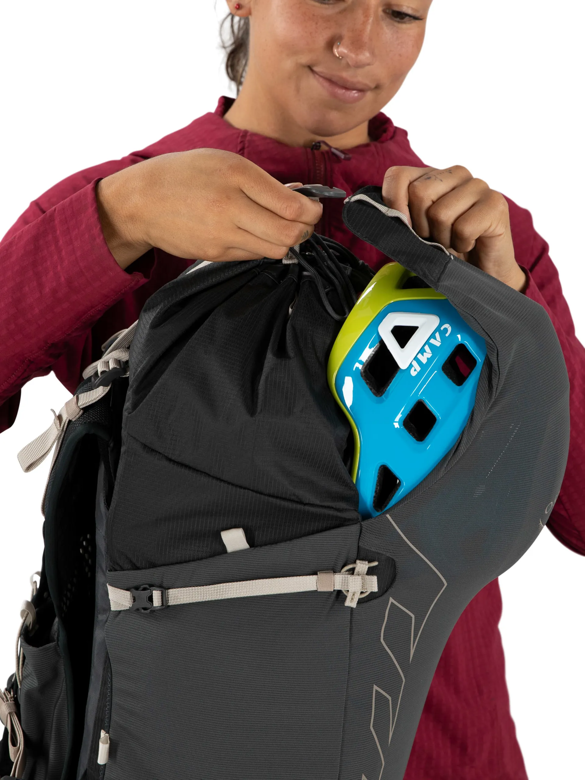 The main entry point is secured with a top cinch closure, which doubles up as top compression for added stability.