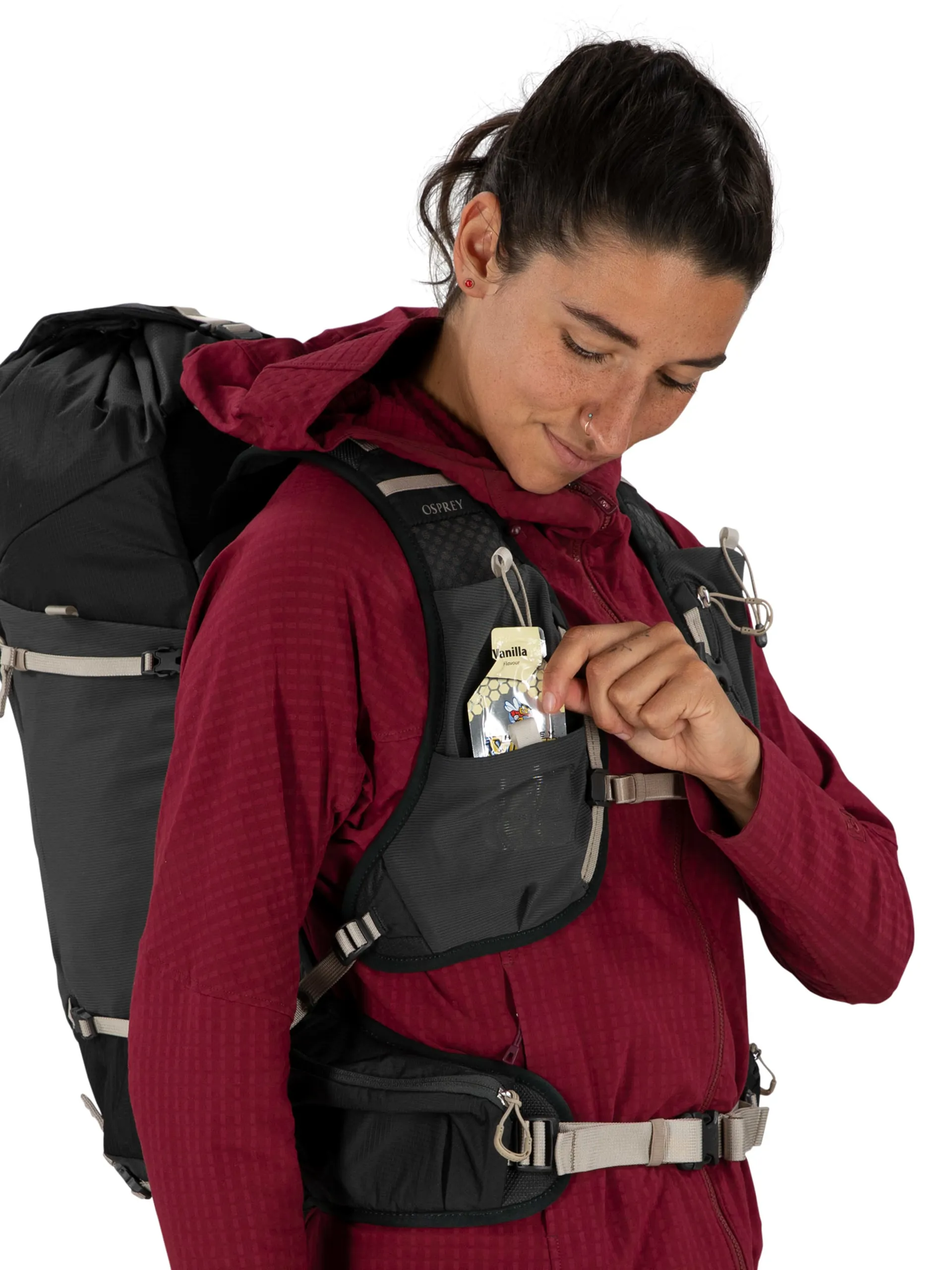 Osprey has also built a Crossbody ErgoPull system into the hip belt. This pulls the lumbar into the body for improved weight distribution, helping to prevent back aches or pains when carrying the pack for extended periods.