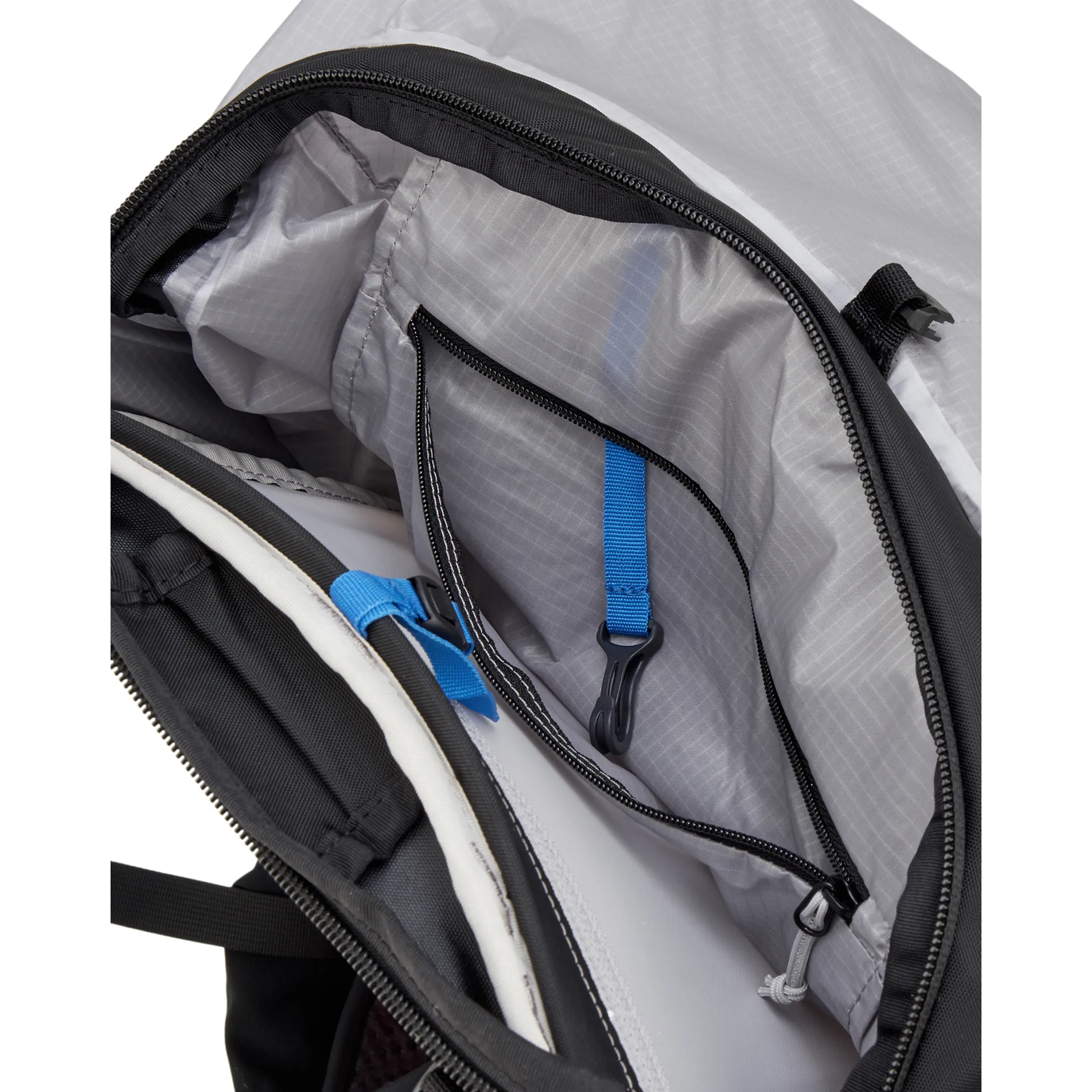 The pack is finished with an external rear zipped hydration bladder compartment for easy use with a water bladder without impacting the pack's internal capacity. This compartment also features an internal zippered pocket with a key clip, providing versatility for those who prefer not to use a water bladder.