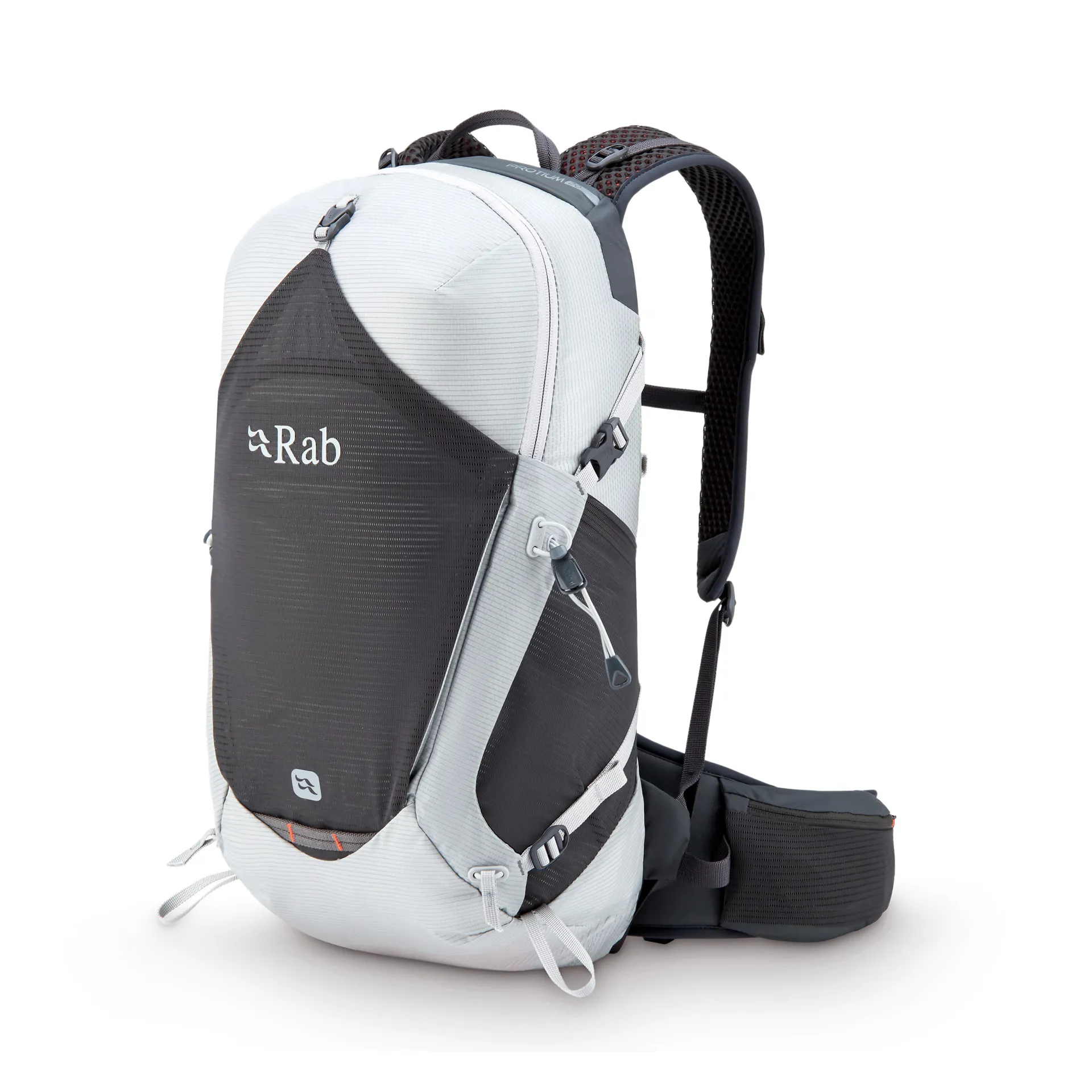 The Protium 20 features Rab’s specialised AirContour™ backsystem, which offers a supportive, breathable back for multi-activity adventures. The vacuum-formed, moulded ABS back panel is precurved to optimally fit the contours of your back. The backsystem has a semi-rigid structure to allow the pack to flex with the body as you move, whilst still providing essential support. The hip belt sits comfortably across your hips to transfer and distribute weight to your lower body. The hip belt can be easily tightened using the forward pull straps to suit varying girths and ensure a perfect fit. The back length can be adjusted between 19-21 inches to further personalise the fit for maximum carrying comfort.