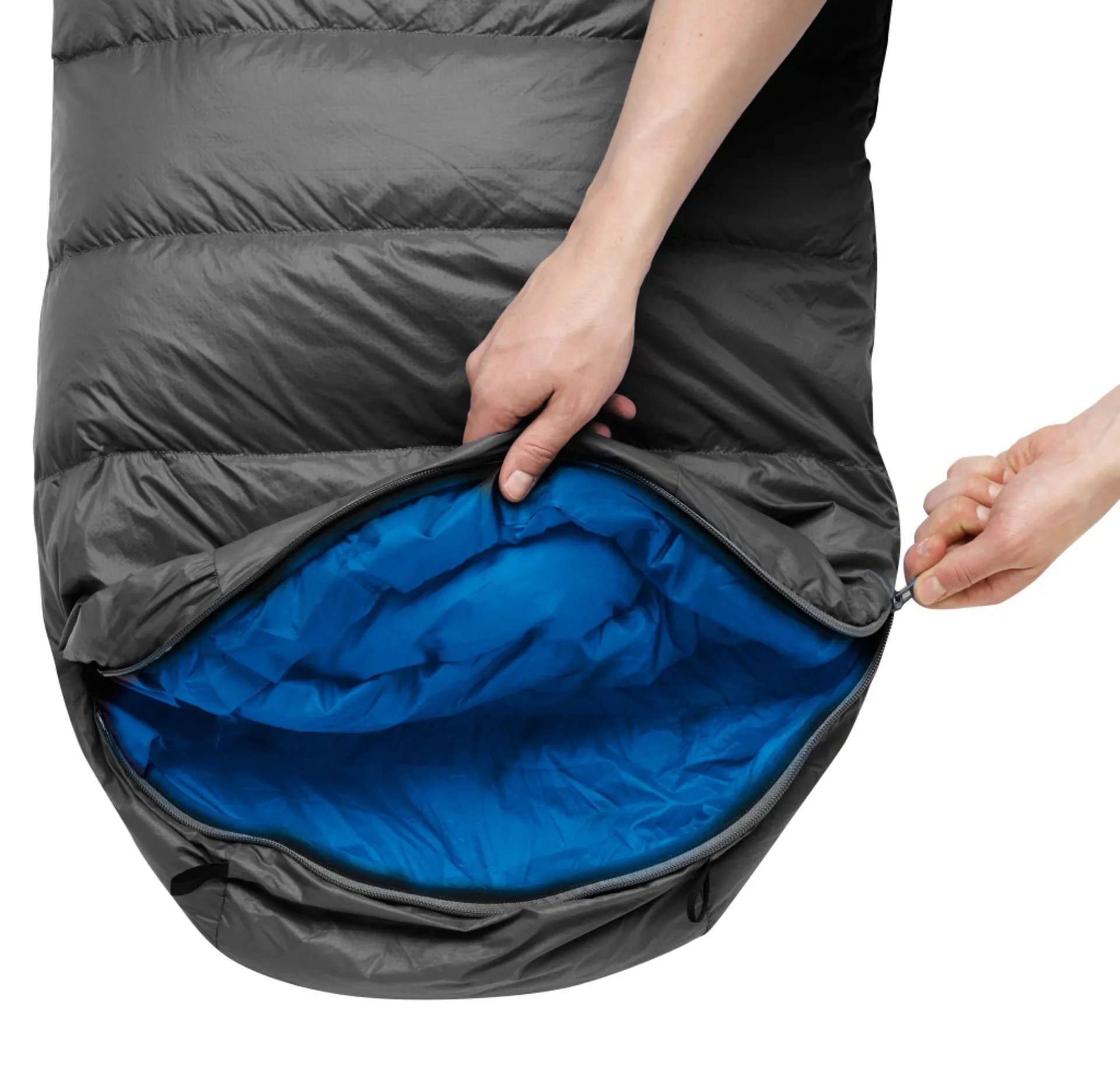 3/4 length zip to transform the bag into a blanket