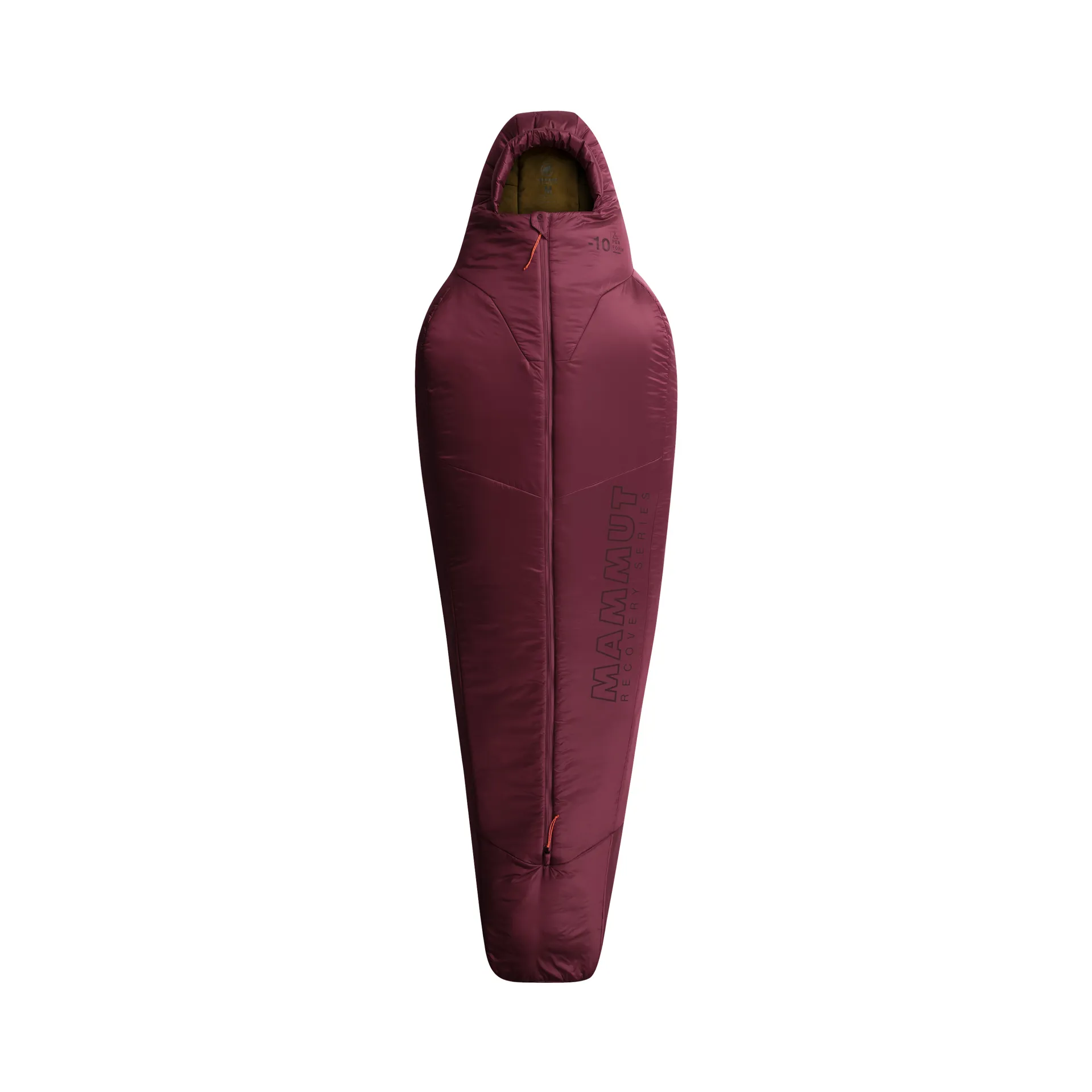 Probably the most unique feature is the centre zip. Rather than your standard side zip which is generally difficult to find and undo in the dark, Mammut's centre zip never snags and can easily be undone no matter what position you're in. The centre zip also massively improves ventilation and allows you to either unzip from the bottom to ventilate your legs, or from the top for greater heat dissipation. A magnet at the top of the zip seals the bag up to your neck and is super easy to undo, just give it a pull. There's also a drawcord to compress the hood and insulation collar for greater warmth.