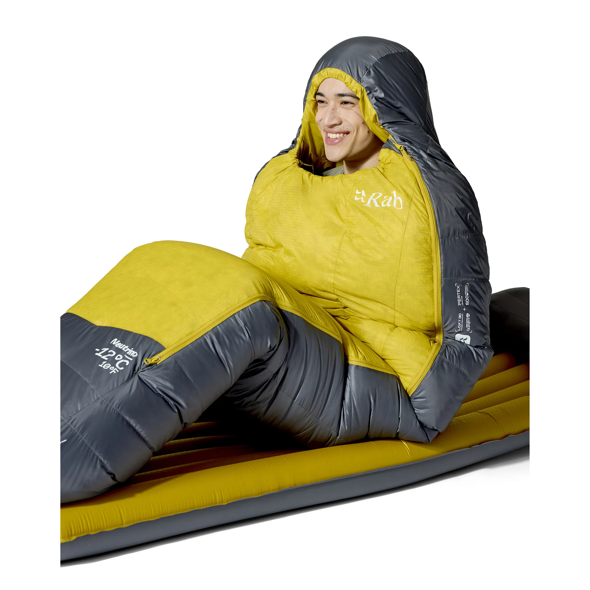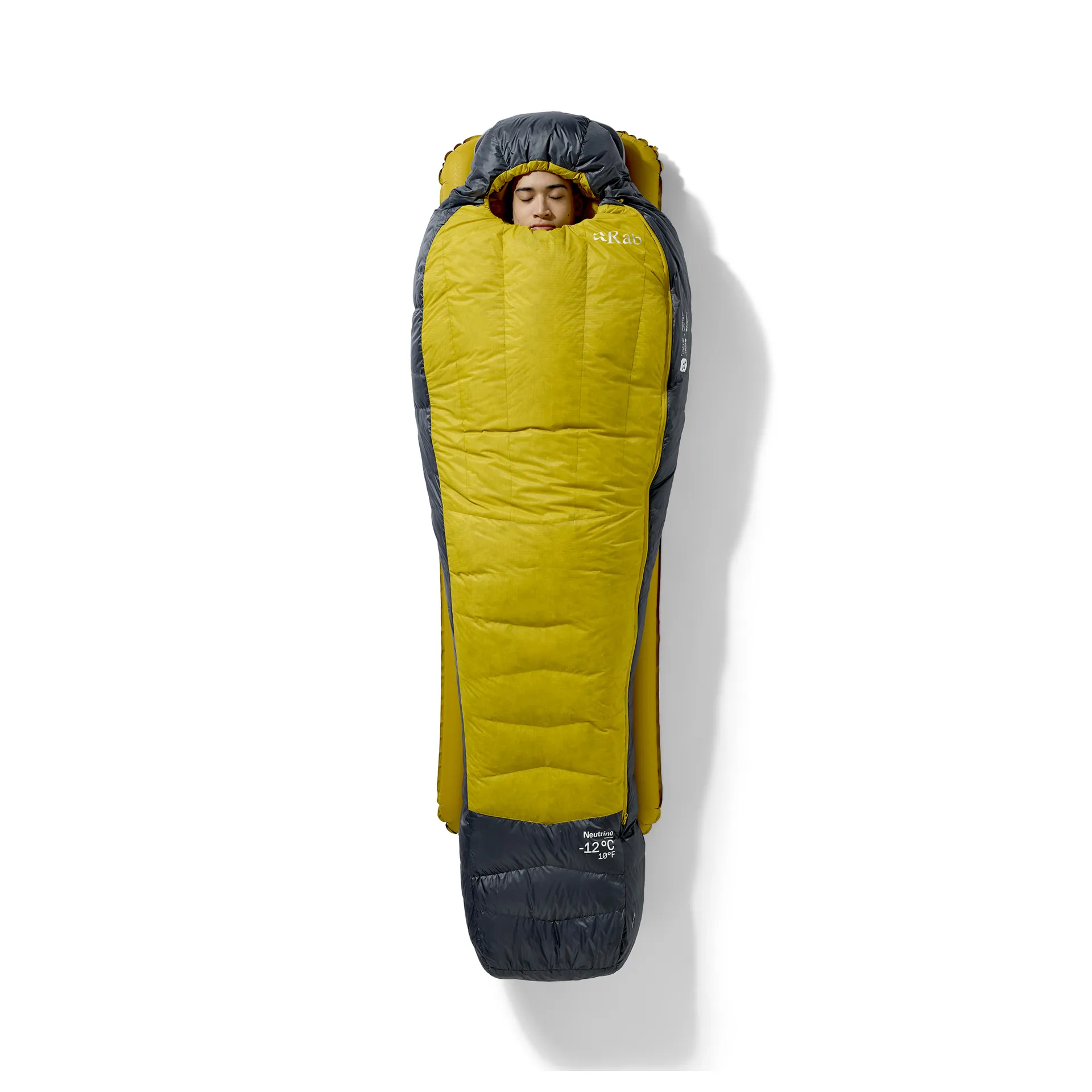 What temperature range is the Rab Neutrino -12 °C / 10 °F sleeping bag rated for?