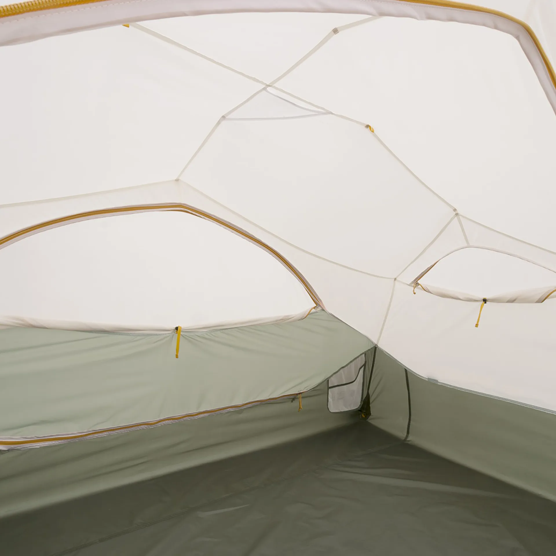 Mesh: The canopy combines durable polyester with no-see-um mesh, a finely woven fabric designed to block even the smallest insects, such as midges, while allowing air to flow freely. This combination maximises ventilation by promoting airflow throughout the tent, helping regulate temperature and reduce condensation build-up, especially during warm weather or multi-day hikes. The fine mesh also allows for clear visibility to the outside, maintaining a sense of openness while keeping you sheltered.